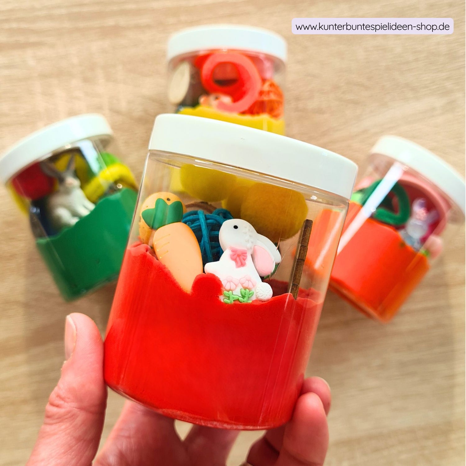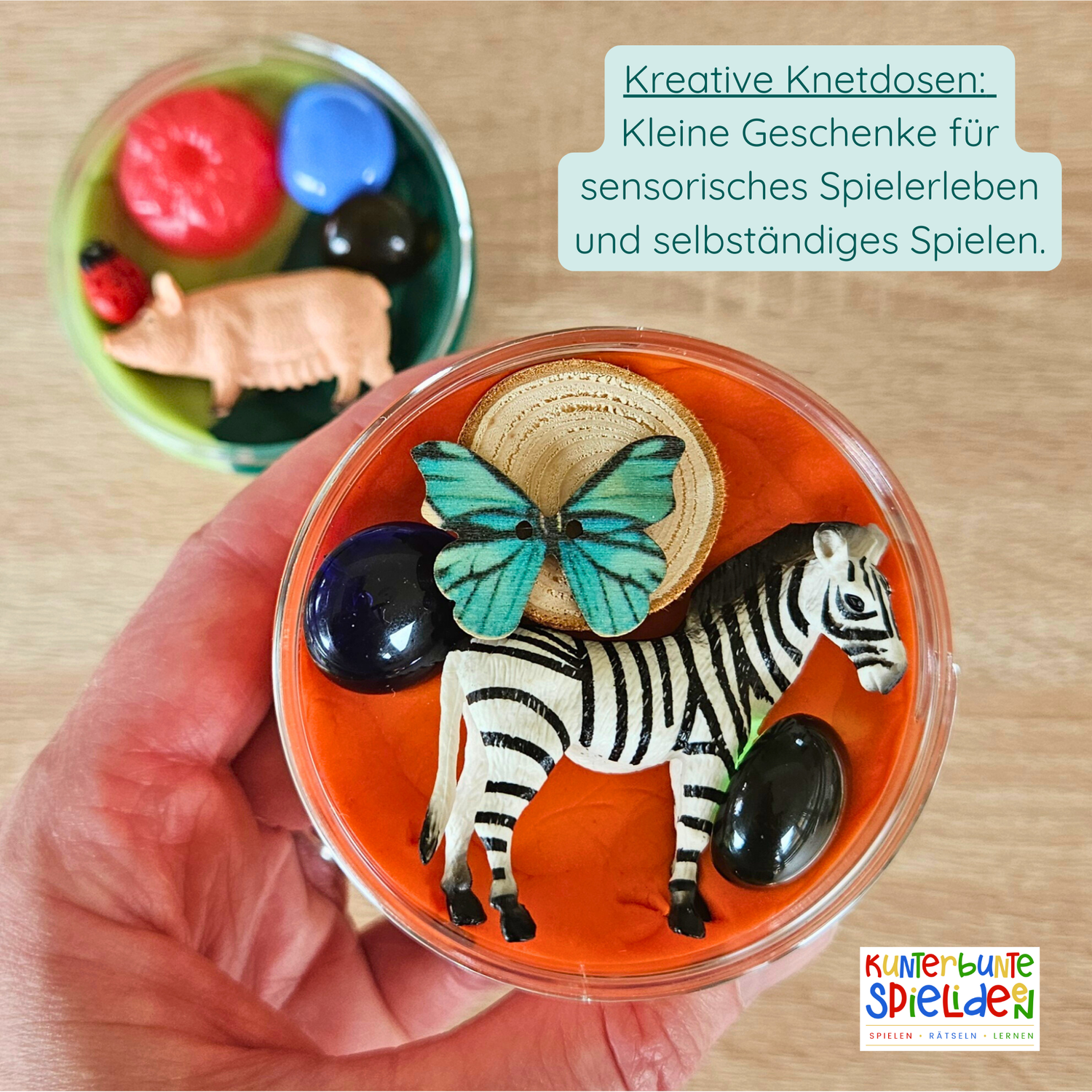 Kleines Geschenk mit Knete – Mini-Knetgläser als sensorisches Knetspiel