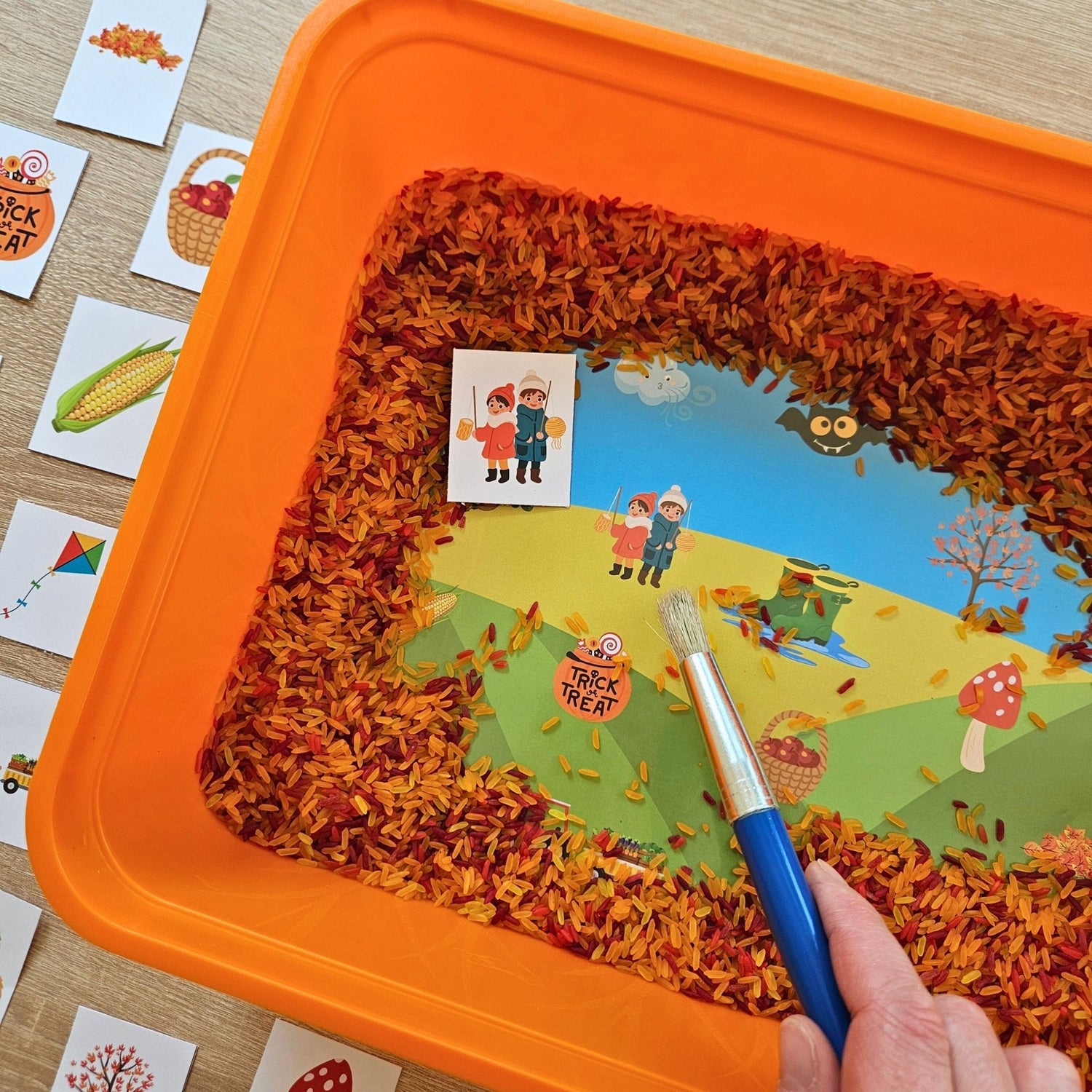 Sensorische Schüttspiele mit Reis – kreative Sensory Play Spielsets und Ideen für Kinder ab 3 Jahren