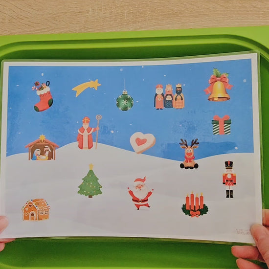 Weihnachten – Sensorisches Reisset (Spielreis/Regenbogenreis): schnell vorbereitet, ideal fürs Suchen-&-Finden, fördert taktile Wahrnehmung & Konzentration.